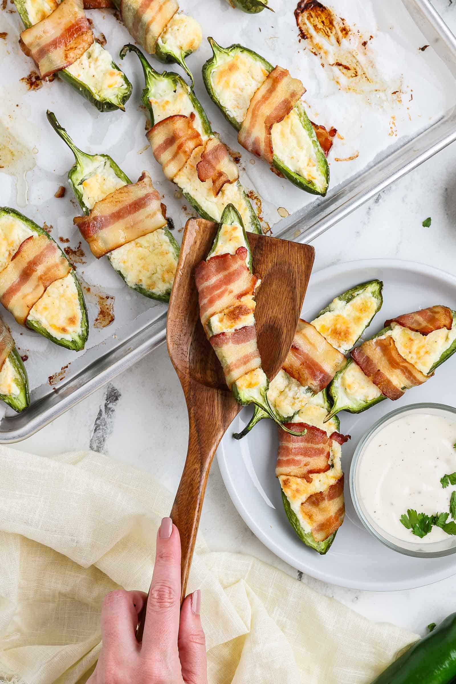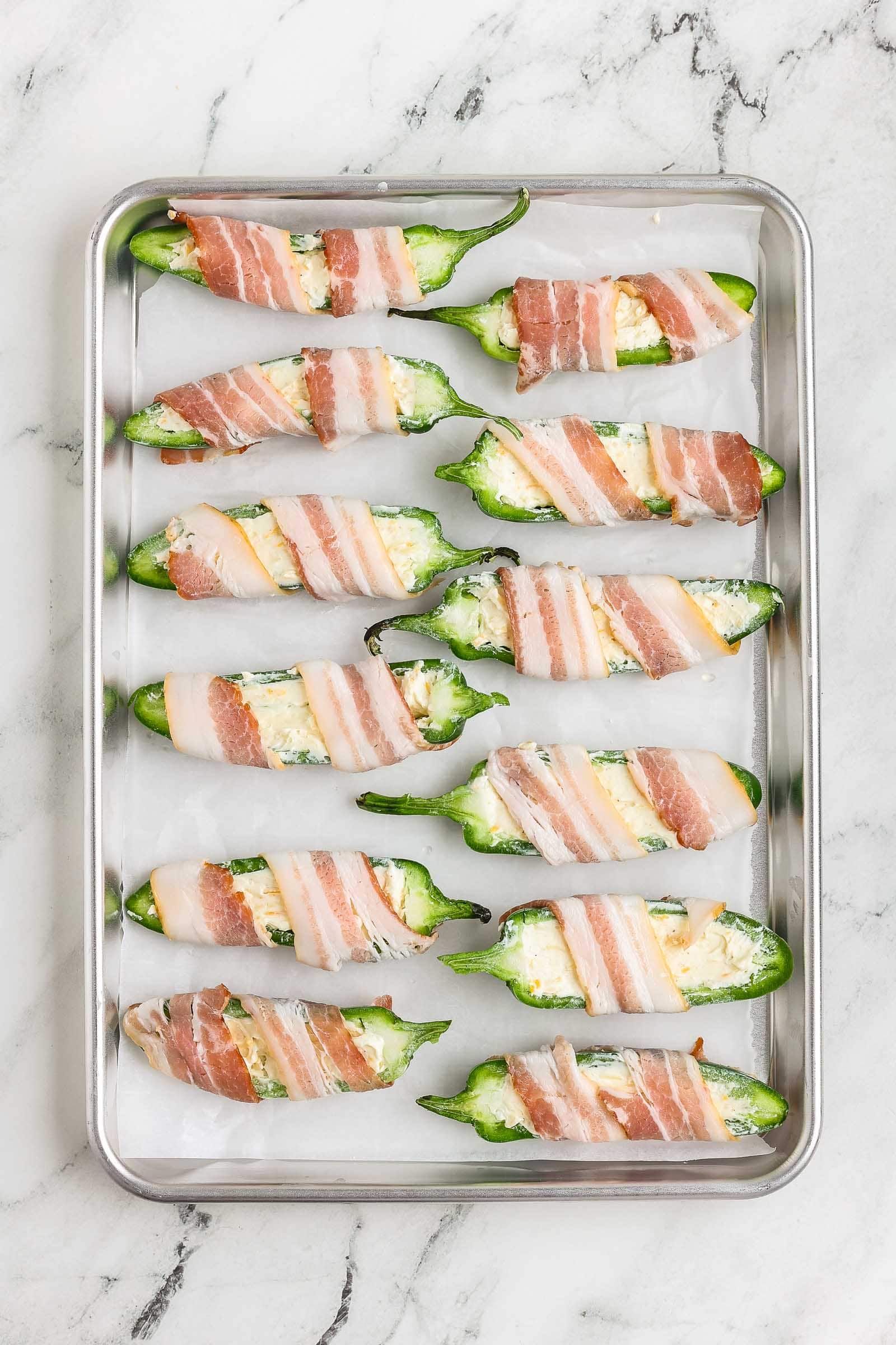 - Use thin-cut bacon: It crisps up better than thick-cut, which can stay chewy and undercooked by the time the jalapeños are tender.