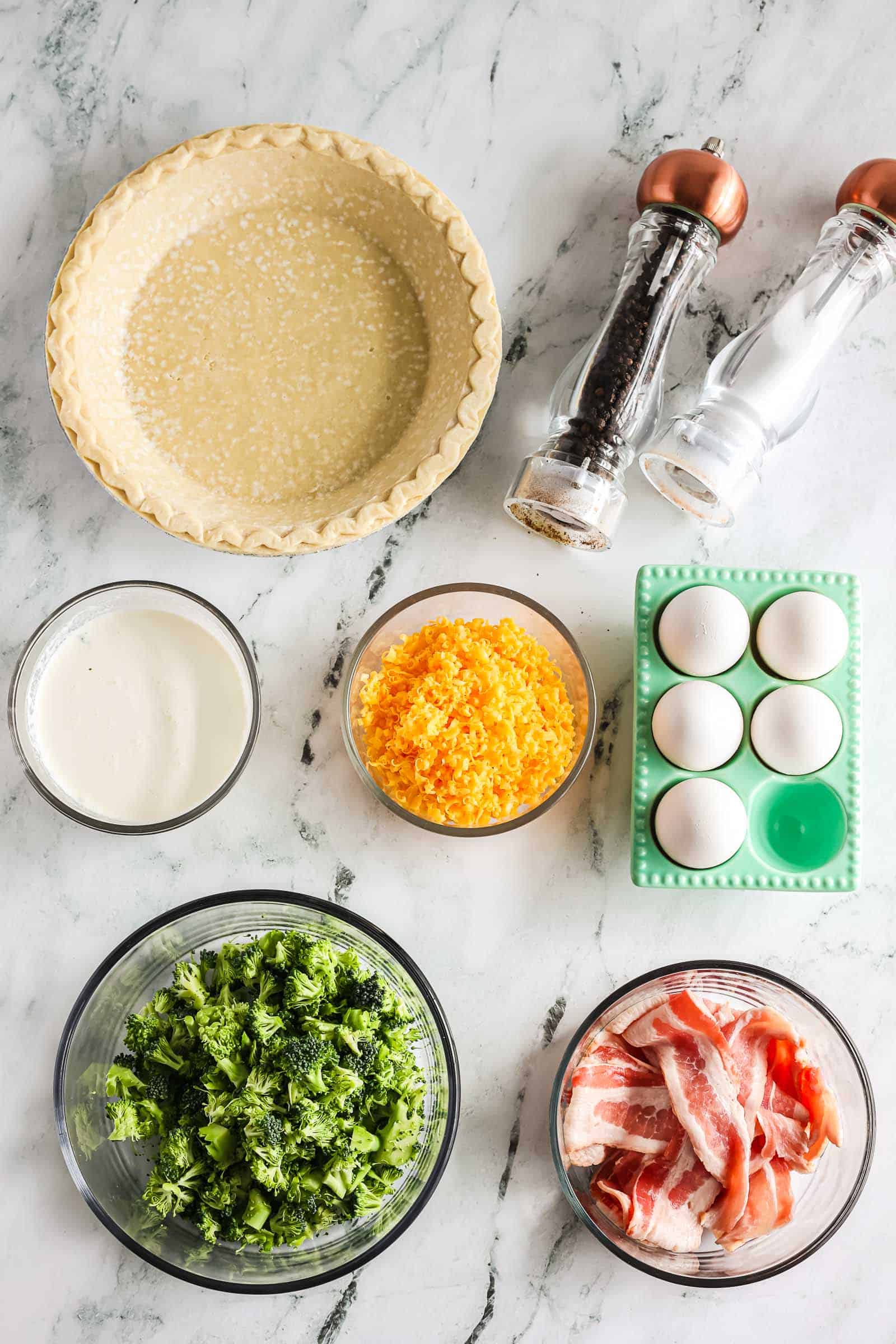 - Pie Crust: Use your favorite pre-made pie crust or make a pie crust from scratch. You can also forgo the pie crust all together to make a crustless quiche.