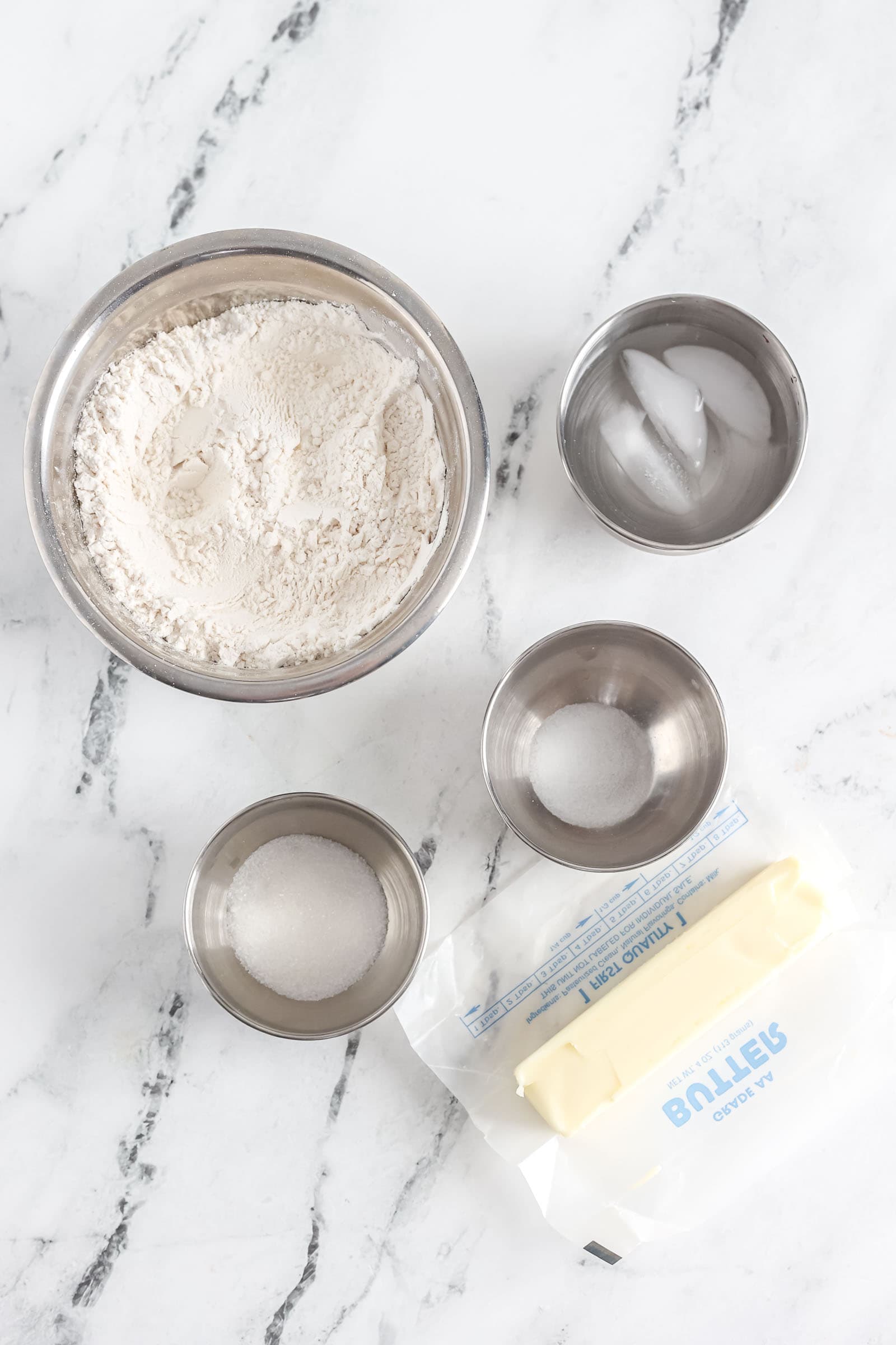 - Ice Water: Ice water hydrates the dough just enough to bring it together without making it too sticky. Keeping it cold prevents the butter from melting, which is essential for a tender, flaky crust.