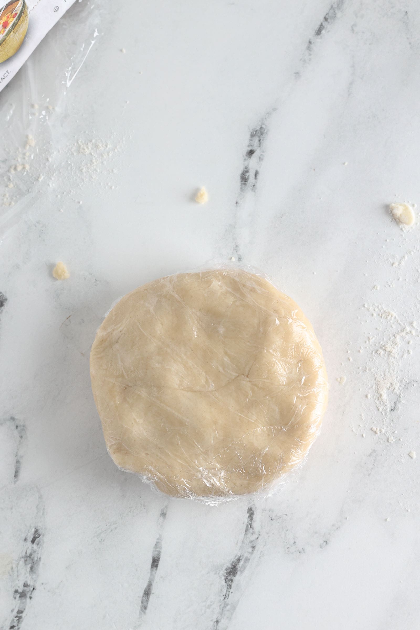 - Form the dough into a disc. Wrap it in plastic wrap, and refrigerate for at least 30 minutes.