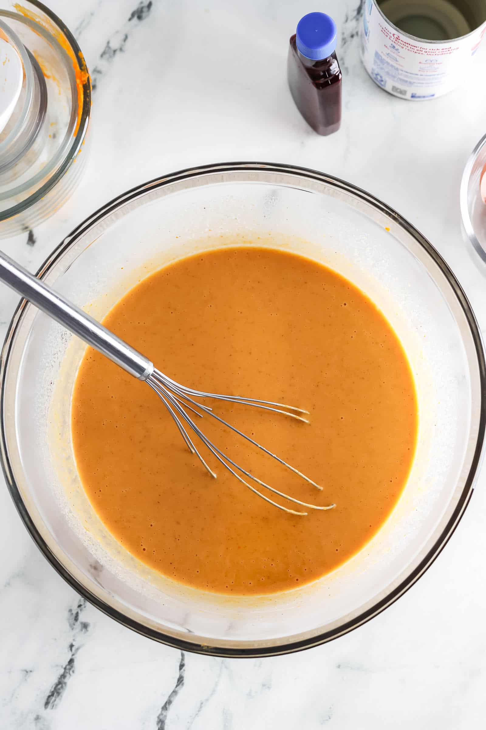 - In a large bowl, whisk together the pumpkin puree, granulated sugar, brown sugar, cinnamon, ginger, cloves, nutmeg, and salt.
