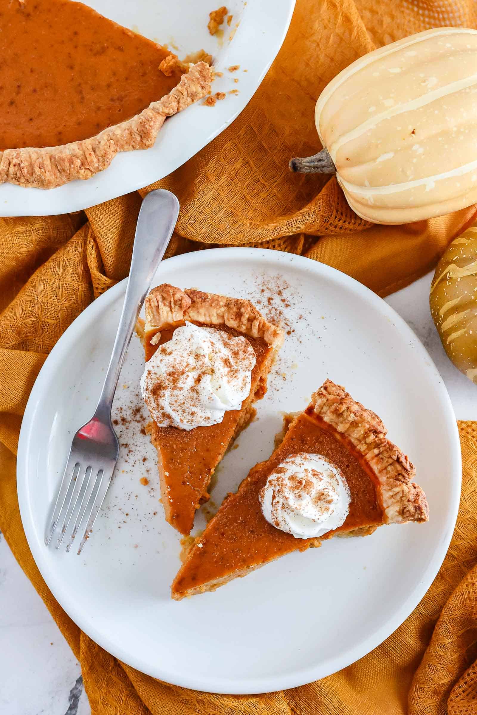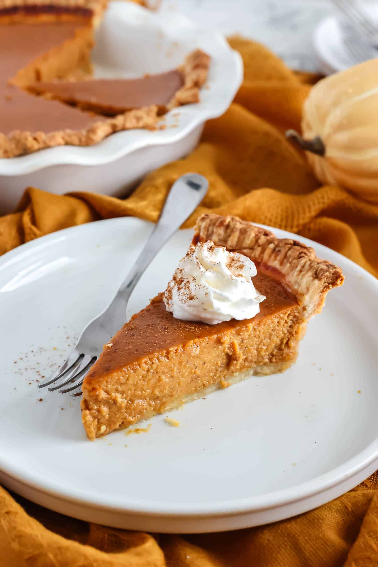 The filling combines the earthy richness of pumpkin, the warm spices of cinnamon, nutmeg, and ginger, and just the right amount of sweetness. These flavors are perfectly balanced with the buttery, flaky crust. The custard filling is creamy and smooth, thanks to the combination of eggs, evaporated milk, and pumpkin puree. It sets beautifully, creating a luscious texture that melts in your mouth.
