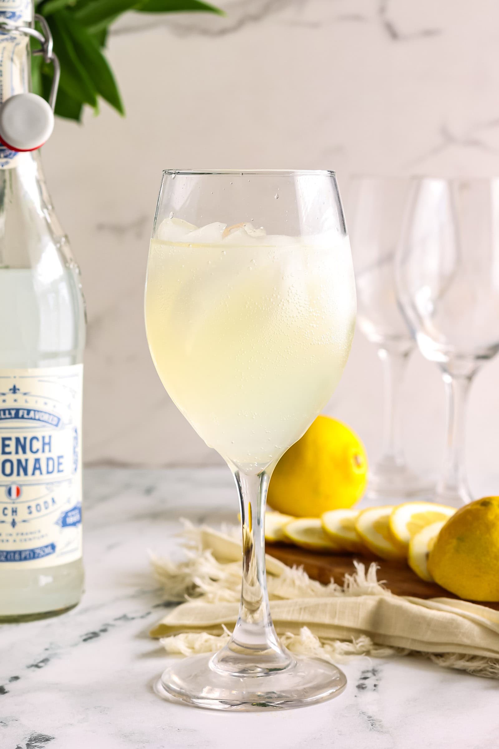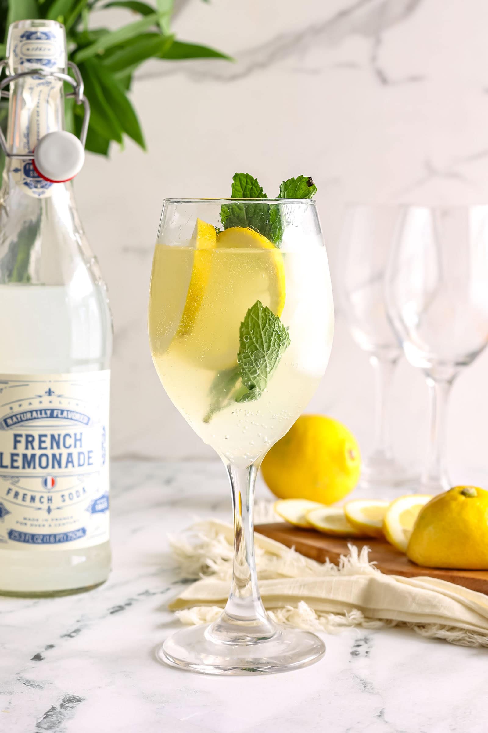 - Sparkling Water or Soda: Club soda or any sparkling water will do the trick. For an added twist, try flavored sparkling water like lemon or lime. Today I am using a French lemonade soda.