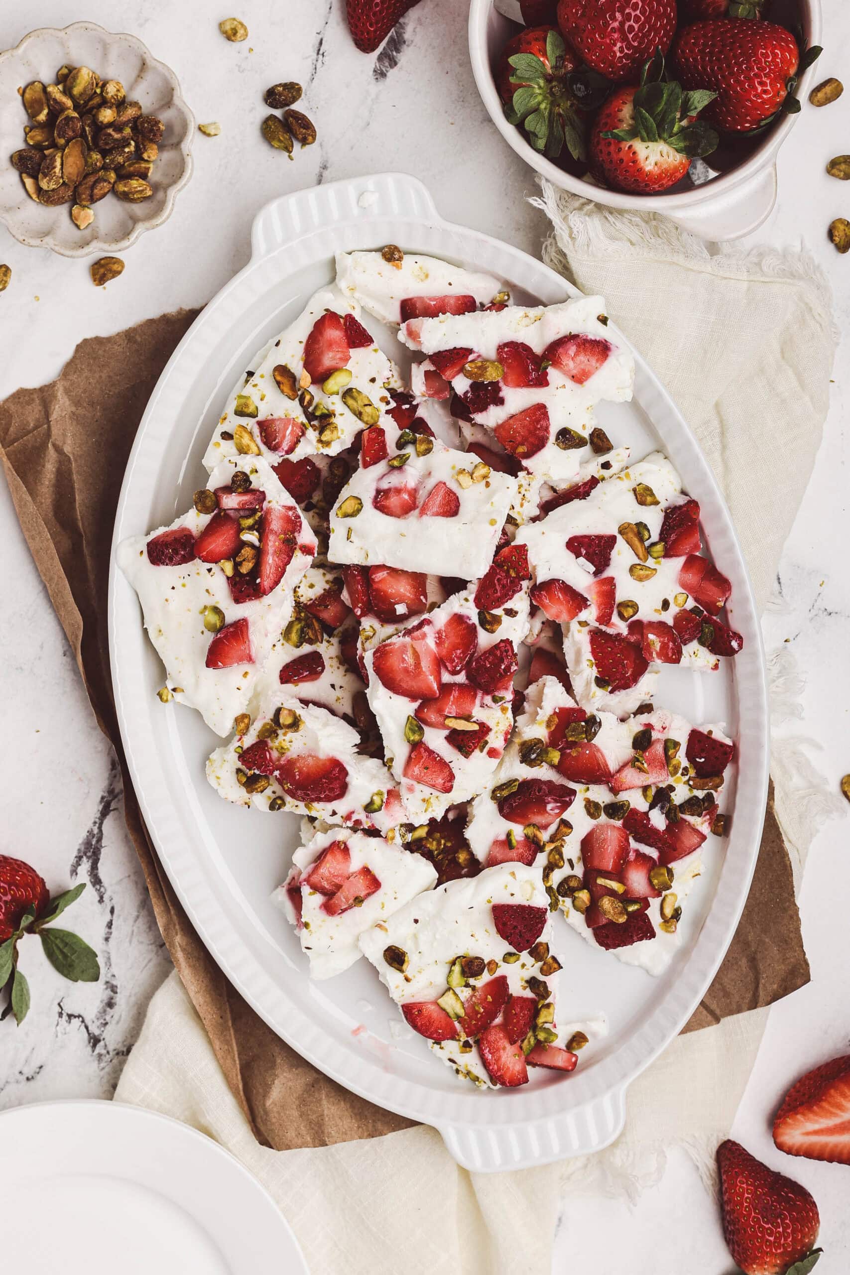 For entertaining, you can cut the bark into clean squares for a polished look, or keep it rustic and hand-broken for a casual, effortless feel. Either way, it’s a simple, refreshing treat that feels special during strawberry season