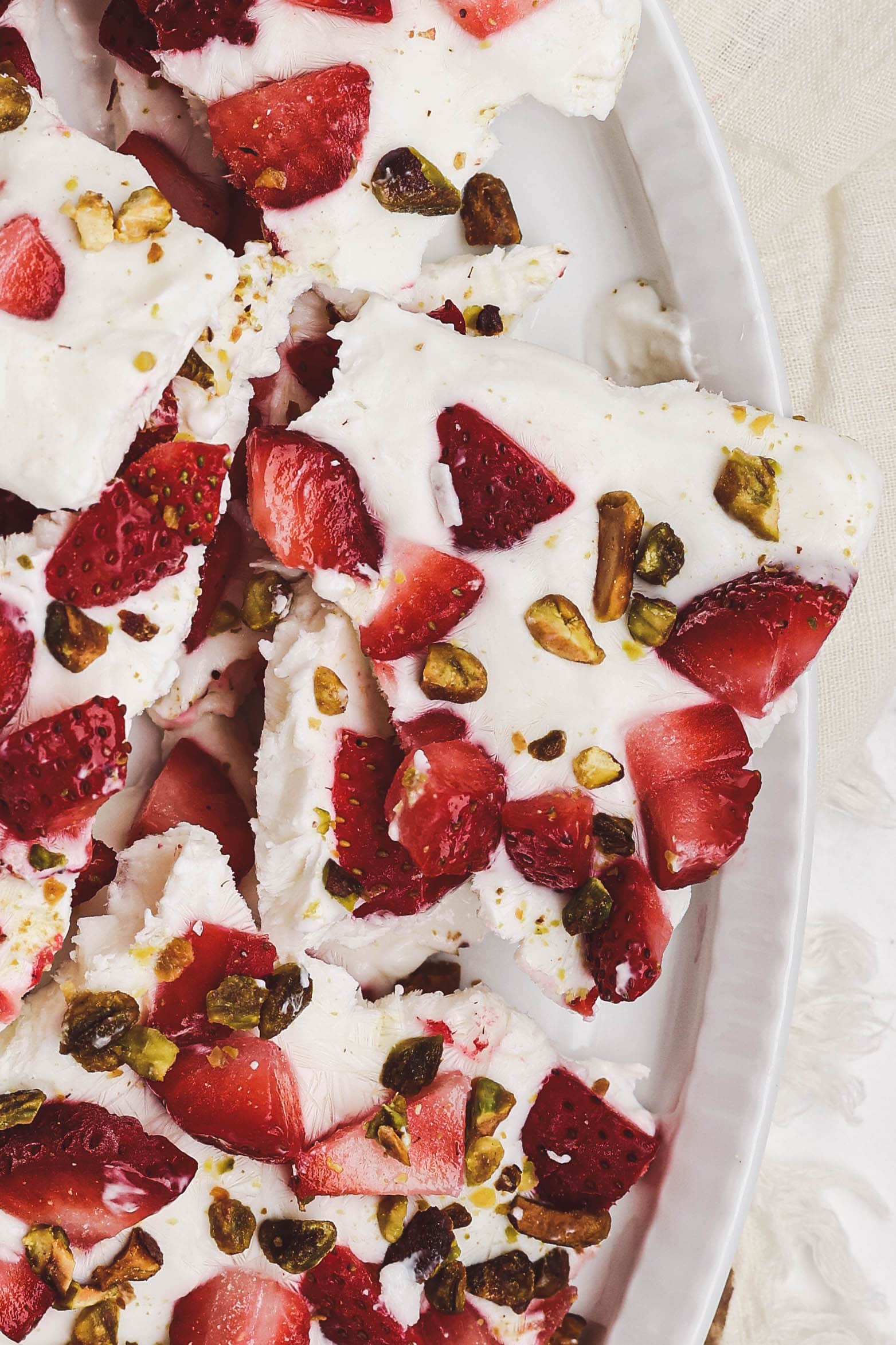 For entertaining, you can cut the bark into clean squares for a polished look, or keep it rustic and hand-broken for a casual, effortless feel. Either way, it’s a simple, refreshing treat that feels special during strawberry season
