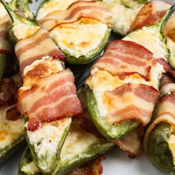 Oven method: Preheat oven to 400°F. Place poppers on a baking sheet lined with foil or parchment paper. Bake 20–25 minutes until bacon is crisp and cheese is bubbly.