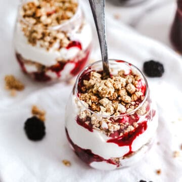 This yogurt parfait is a real delight that can be made in a matter of minutes, making it a perfect breakfast choice. The tartness of the Greek yogurt is perfectly balanced with fresh blackberries and the blackberry compote, and topped with crunchy granola for some additional flavor and texture.