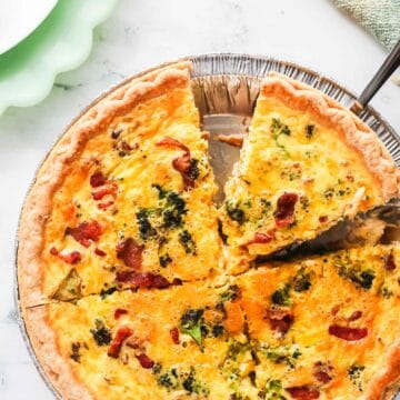 This easy broccoli cheese quiche recipe combines the savory flavors of cheddar cheese, crispy bacon, and tender broccoli florets nestled in a buttery, flaky crust.