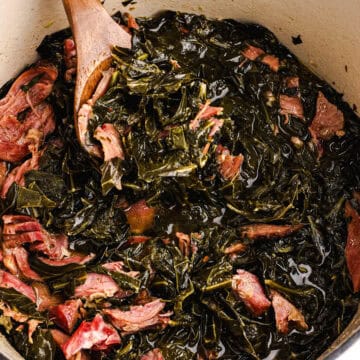 Remove the ham bone, pull off any tender meat, and stir it back into the greens if you’d like. Serve warm with a ladle of the pot liquor and a side of skillet cornbread.