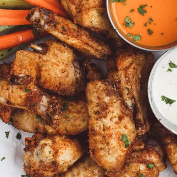 Serve the wings as is with a side of ranch or toss in your favorite sauce, like buffalo, lemon pepper butter, or honey garlic.